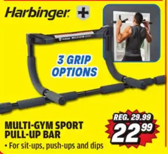 In which store will Harbinger Multi-Gym Sport Pull-Up Bar be on sale next week? These are some of the questions we get asked a lot. It’s only normal, nobody likes to pay too much! Our team keeps an eye on all deals and lists them online as soon as possible. So you can customize your (shopping) list with this week's offers and those of next week. Make sure to check next week’s Big 5 ad, some of the specials are only available next week or online.Frequently asked questions about Harbinger Multi-Gym Sport Pull-Up Bar