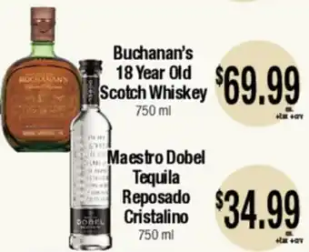 Buchanan's 18 Year Old Scotch Whiskey, Maestro Dobel Tequila Reposado Cristalino Discount at Big Saver Foods