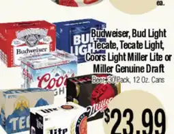 Budweiser, Bud Light Tecate, Tecate Light, Coors Light Miller Lite or Miller Genuine Draft