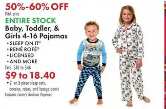 Baby, Toddler, & Girls 4-16 Pajamas Discount at Boscov's