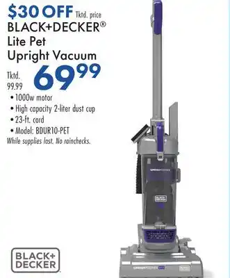 The price of BLACK + DECKER Lite Pet Upright Vacuum can be found at the top of the page, together with the dates during which the offer is available. You can also check the price in the current weekly ad or on the Boscov's website. Promotional offers assure you of buying Boscov's products at the lowest price.