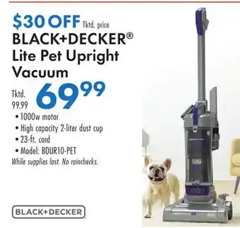 The price of BLACK + DECKER Lite Pet Upright Vacuum can be found at the top of the page, together with the dates during which the offer is available. You can also check the price in the current weekly ad or on the Boscov's website. Promotional offers assure you of buying Boscov's products at the lowest price.