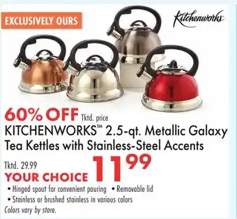 KITCHENWORKS 2.5-qt. Metallic Galaxy Tea Kettles with Stainless-Steel Accents offers and online specials, straight from the current Boscov's ad