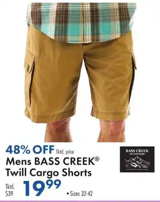 Mens BASS CREEK Twill Cargo Shorts Discount at Boscov's