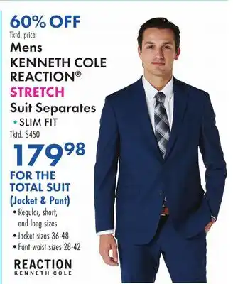 Mens KENNETH COLE REACTION STRETCH Suit Separates deals and online offers from the current Boscov's weekly ad