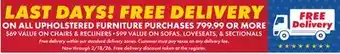 The price of ON ALL UPHOLSTERED FURNITURE PURCHASES can be found at the top of the page, together with the dates during which the offer is available. You can also check the price in the current Boscov's weekly ad or on the Boscov's website. Promotional offers assure you of buying Boscov's products at the lowest price.