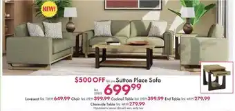 The price of Sutton Place Sofa can be found at the top of the page, together with the dates during which the offer is available. You can also check the price in the current weekly ad or on the Boscov's website. Promotional offers assure you of buying Boscov's products at the lowest price.