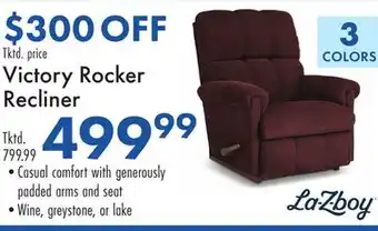 Current Victory Rocker Recliner deal at Boscov's from 8-01 until 14-01.