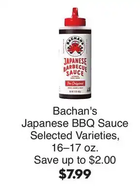 The price of Bachan's Japanese BBQ Sauce can be found at the top of the page, together with the dates during which the offer is available. You can also check the price in the current weekly ad or on the Bristol Farms website. Promotional offers assure you of buying Bristol Farms products at the lowest price.