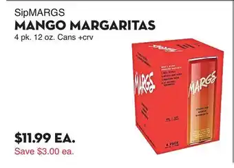 Current SipMARGS MANGO MARGARITAS deal at Bristol Farms from 22-04 until 5-05.