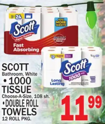 C Town offers a wide collection of products, besides the SCOTT 1000 TISSUE Choose-A-Size, 108 sh., DOUBLE ROLL TOWELS 12 ROLL PKG. Keep an eye on the weekly weekly ad to find the best offers and promotions. Besides SCOTT 1000 TISSUE Choose-A-Size, 108 sh., DOUBLE ROLL TOWELS 12 ROLL PKG, you can also find the following offers: Scott 1000 Tissue 12 Roll Pkg, Scott 1000 Sheet Bath Tissue 20 roll pkg., Choose-a-size Paper Towels 15 ct. mega rolls & Brawny Paper Towels 6 double roll Quilted Northern Bath Tissue 9 mega roll.
