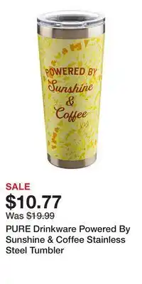 When is PURE Drinkware Powered By Sunshine & Coffee Stainless Steel Tumbler on sale? or "I want to know if PURE Drinkware Powered By Sunshine & Coffee Stainless Steel Tumbler will be discounted next week?" These are very common questions. Many people make a (shopping) list, with products that they are looking to buy next week. That’s why we always post next week’s flyers first. So you know exactly whether you need to wait a while before making a purchase or when to get it at the cheapest price. Keep an eye on our website to see if next week’s flyer has a deal on PURE Drinkware Powered By Sunshine & Coffee Stainless Steel Tumbler.Will there be a promotion PURE Drinkware Powered By Sunshine & Coffee Stainless Steel Tumbler next week?
