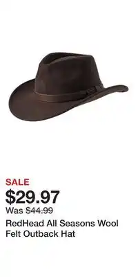 Now on specials at Cabela's: RedHead All Seasons Wool Felt Outback Hat✅ Valid in the weekly ad from 6-02 to 12-02.