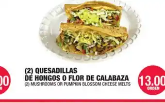 (2) QUESADILLAS DE HONGOS O FLOR DE CALABAZA deal in the weekly ad of Carnicerias Jimenez