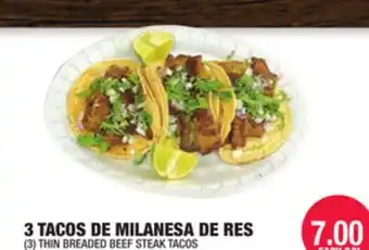 3 TACOS DE MILANESA DE RES offers and online specials, straight from the current Carnicerias Jimenez ad