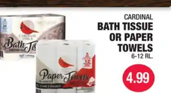 CARDINAL BATH TISSUE OR PAPER TOWELS