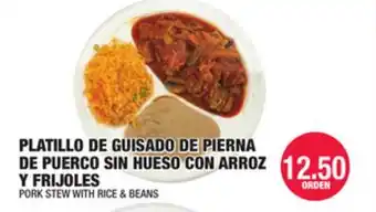 PLATILLO DE GUISADO DE PIerna DE PUEBCO SIN HUESO CON ARROZ Y FRIJOLES offers and online specials, straight from the current Carnicerias Jimenez ad