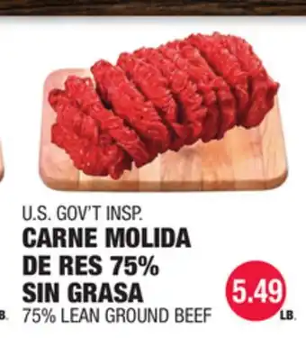 U.S. GOV'T INSP. CARNE MOLIDA DE RES 75% SIN GRASA