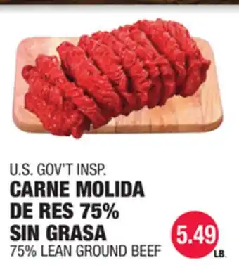 U.S. GOV'T INSP. CARNE MOLIDA DE RES 75% SIN GRASA deal in the weekly ad of Carnicerias Jimenez
