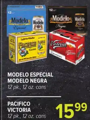 This offer is available in various stores, view all products to get the cheapest MODELO ESPECIAL MODELO NEGRA PACIFICO VICTORIA. If you'd like to find out whether this product has a bigger discount in another store, check the category 'Grocery'. You may also find these offers interesting: Modelo Especial & Modelo Negra, MODELO, CORONA, PACIFICO, VICTORIA Beer & Modelo Especial.