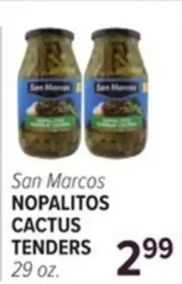 This offer is available in various stores, view all products to get the cheapest San Marcos NOPALITOS CACTUS TENDERS. If you'd like to find out whether this product has a bigger discount in another store, check the category 'Grocery'. You may also find these offers interesting: San Marcos or Goya, San Marcos Whole Jalapeños & San Marcos CHIPOTLE PEPPERS.
