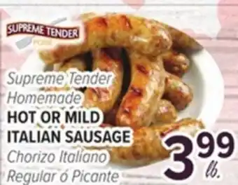Supreme Tender Homemade HOT OR MILD ITALIAN SAUSAGE deal in the weekly ad of Cermak Fresh Market