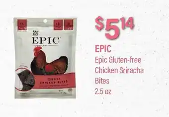 This offer is available in various stores, view all products to get the cheapest EPIC Gluten-free Chicken Sriracha Bites. If you'd like to find out whether this product has a bigger discount in another store, check the category 'Grocery'. You may also find these offers interesting: Good Graces gluten free chicken nuggets or tenders, UDI'S GLUTEN FREE PIZZA & DeCecco Gluten Free Gnocchi.