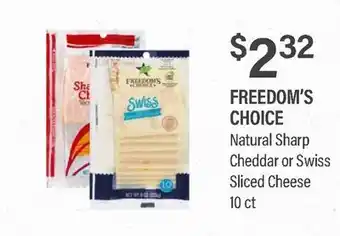 FREEDOM'S CHOICE Natural Sharp Cheddar or Swiss Sliced Cheese