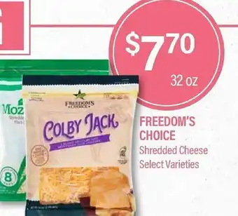 This offer is available in various stores, view all products to get the cheapest FREEDOM'S CHOICE Shredded Cheese. If you'd like to find out whether this product has a bigger discount in another store, check the category 'Grocery'. You may also find these offers interesting: FREEDOM'S CHOICE Cheese Snacks, FREEDOM'S CHOICE Microwave Popcorn & FREEDOM'S CHOICE Salad Dressing.