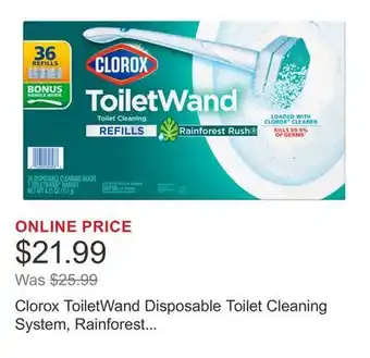 Current Clorox ToiletWand Disposable Toilet Cleaning System, Rainforest Rush, 1 Wand & 36 Refills deal at Costco from 23-02 until 1-03.