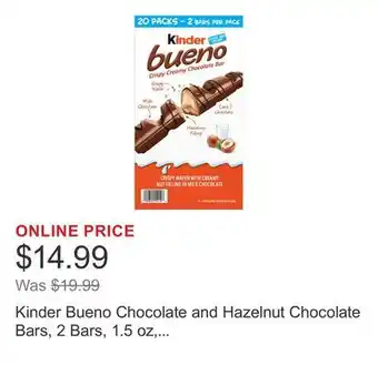 Kinder Bueno Chocolate and Hazelnut Chocolate Bars, 2 Bars, 1.5 oz offers and online specials, straight from the current Costco ad