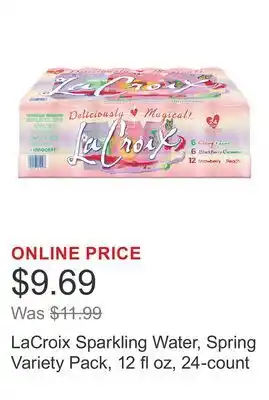 LaCroix Sparkling Water, Spring Variety Pack, 12 fl oz, 24-count offers and online specials, straight from the current Costco ad