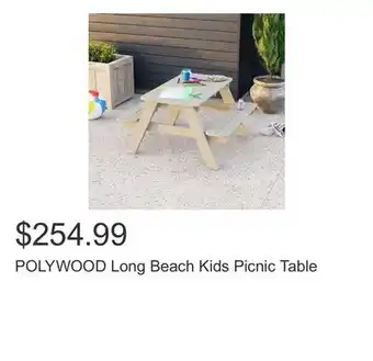 This offer is available in various stores, view all products to get the cheapest POLYWOOD Long Beach Kids Picnic Table. If you'd like to find out whether this product has a bigger discount in another store, check the category 'Wholesale'. You may also find these offers interesting: BEACH CLIFF SARDINES, Kids' Muck Boots & Table Runners.