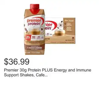 Premier 30g Protein PLUS Energy and Immune Support Shakes, Cafe Latte, 11 fl oz, 18-pack