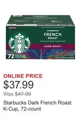 Starbucks Dark French Roast K-Cup, 72-count deals and online offers from the current Costco weekly ad