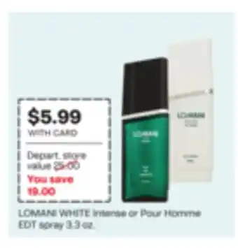 LOMANI WHITE Intense or Pour Homme EDT spray offers and online specials, straight from the current CVS ad