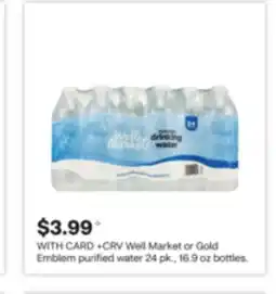 Well Market or Gold Emblem purified water 24 pk., 16.9 oz bottles