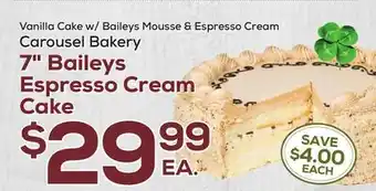 The price of 7 Baileys Espresso Cream Cake can be found at the top of the page, together with the dates during which the offer is available. You can also check the price in the current DeCicco & Sons weekly ad or on the DeCicco & Sons website. Promotional offers assure you of buying DeCicco & Sons products at the lowest price.