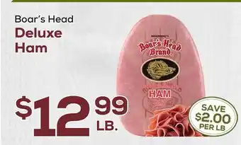 This offer is available in various stores, view all products to get the cheapest Boar's Head Deluxe Ham. If you'd like to find out whether this product has a bigger discount in another store, check the category 'Grocery'. You may also find these offers interesting: BOAR'S HEAD DELUXE HAM, Boar's Head Lower Sodium Branded Deluxe Ham & Boar's Head BourbonRidge Uncured Ham.