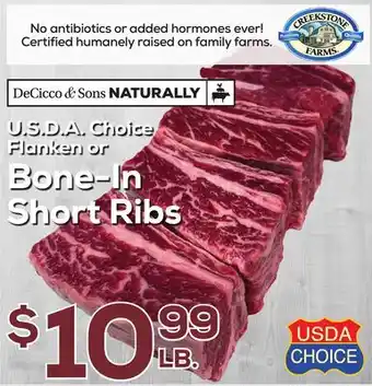 DeCicco & Sons offers a wide collection of products, besides the Bone-In Short Ribs. Keep an eye on the weekly DeCicco & Sons weekly ad to find the best offers and promotions. Besides Bone-In Short Ribs, you can also find the following offers: Flanken or DeCicco & Sons Naturally U.S D. A. Choice Bone-In Short Ribs, SHORT RIBS & Fresh Beef Flanken Ribs or Beef Short Ribs.