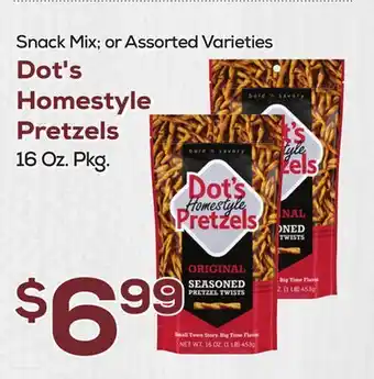 This offer is available in various stores, view all products to get the cheapest Dot's Homestyle Pretzels. If you'd like to find out whether this product has a bigger discount in another store, check the category 'Grocery'. You may also find these offers interesting: Dot's Homestyle Pretzels, DOT'S PRETZELS & Homestyle Pretzels.