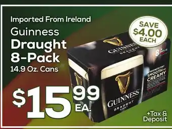This offer is available in various stores, view all products to get the cheapest Guinness Draught 8-Pack. If you'd like to find out whether this product has a bigger discount in another store, check the category 'Grocery'. You may also find these offers interesting: Guinness Draught 4-Pack, Guinness Draught 8-Pack & Guinness DRAUGHT.
