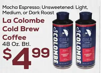 This offer is available in various stores, view all products to get the cheapest La Colombe Cold Brew Coffee. If you'd like to find out whether this product has a bigger discount in another store, check the category 'Grocery'. You may also find these offers interesting: La Colombe Cold Brew Coffee, LA COLOMBE COLD BREW COFFEE 48 Oz. Btl & La Colombe Cold Brew Coffee, Medium or Dark Roast.