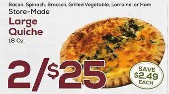 The Large Quiche is available this week in the weekly ad of DeCicco & Sons, with an attractive discount. On this page, you’ll find all the information about current promotional prices, terms of the promotion, and special discounts. Browse through the weekly ad and check out other offers and promotions related to Large Quiche to ensure you get the best deal.The deal for Large Quiche is valid in week 50 and can be found in the current weekly ad. Has the deal expired? No worries, you can always check other interesting offers in the weekly ad. You can also follow the product category to be immediately informed when Large Quiche is back in the weekly ad of DeCicco & Sons.