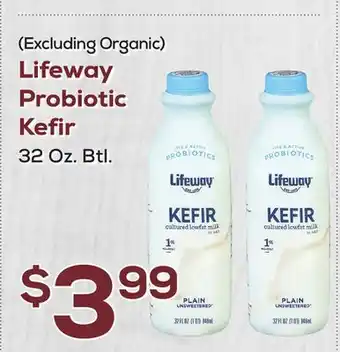 This offer is available in various stores, view all products to get the cheapest Lifeway Probiotic Kefir. If you'd like to find out whether this product has a bigger discount in another store, check the category 'Grocery'. You may also find these offers interesting: LIFEWAY LOW FAT KEFIR DRINK, Lala Drinkable Yogurt 4 Pk. Lifeway Kefir 32 Oz & Suja Probiotic Shots.