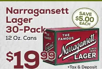 Narragansett Lager 30-Pack deal in the weekly ad of DeCicco & Sons