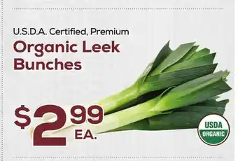 In which store will Organic Leek Bunches be on sale next week? These are some of the questions we get asked a lot. It’s only normal, nobody likes to pay too much! Our team keeps an eye on all deals and lists them online as soon as possible. So you can customize your (shopping) list with this week's offers and those of next week. Make sure to check next week’s DeCicco & Sons ad, some of the specials are only available next week or online.Frequently asked questions about Organic Leek Bunches