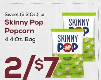 This offer is available in various stores, view all products to get the cheapest Skinny Pop Popcorn, 4.4 Oz. Bag. If you'd like to find out whether this product has a bigger discount in another store, check the category 'Grocery'. You may also find these offers interesting: Skinny Pop Popcorn, Skinny Pop Popcorn 4 Oz. Amaranth Churritos or Chips & Pop Secret Popcorn.