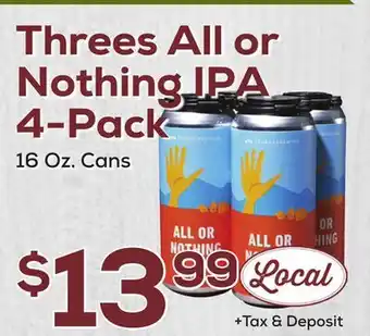 Threes All or Nothing IPA 4-Pack deals and online offers from the current DeCicco & Sons weekly ad