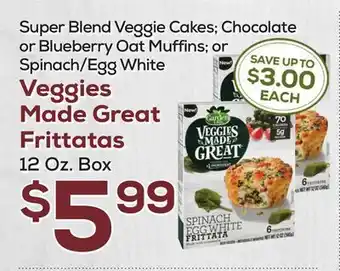 This offer is available in various stores, view all products to get the cheapest Veggies Made Great Frittatas. If you'd like to find out whether this product has a bigger discount in another store, check the category 'Grocery'. You may also find these offers interesting: Veggies Made Great Muffins, Frittatas or Potato Bakes, Veggies Made Great Muffi ns, Frittatas or Potato Bakes & Veggies Made Great Muffins.